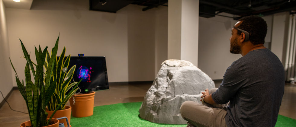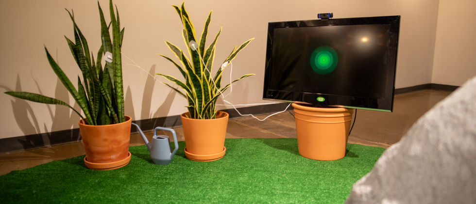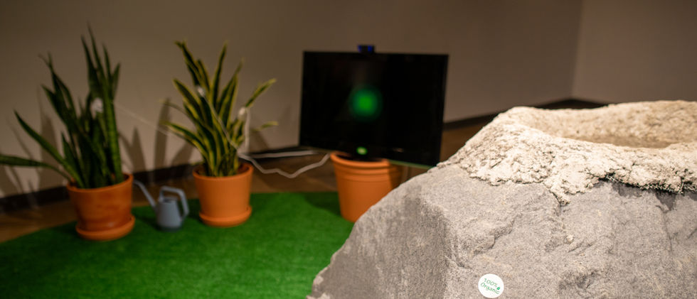 Fauxtanical is an interactive multimedia installation which utilizes physiological data gathered from a real plant, an artificial plant, and a human source to allow for a collaborative interplay between human-machine, non-human, real, and faux - occupying an in-between space between the actual and the virtual. This data is represented via a generative animation appearing on a nearby monitor, while an acousmatic soundscape plays through the cymatic resonance from within a 'liminal boulder' and it's small body of water. In the process, co-occurring feedback loops betwixt both real and faux inquire on the interrelatedness of the entities involved. ​